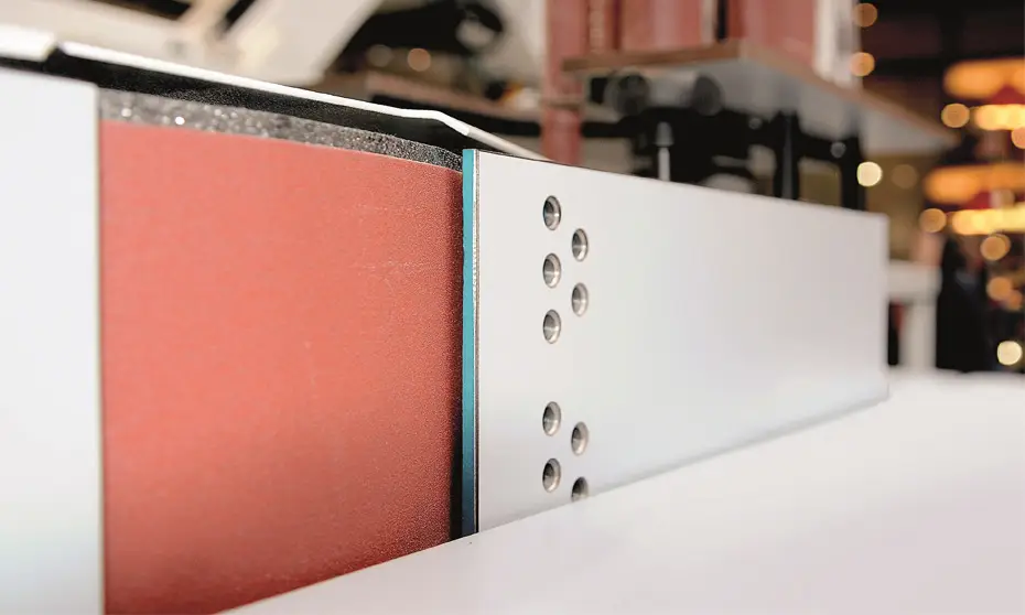 • Verschiebbarer Gehrungsanschlag ±45°- Feineinstellbarer Schleifschuh für Furnierschleifarbeiten