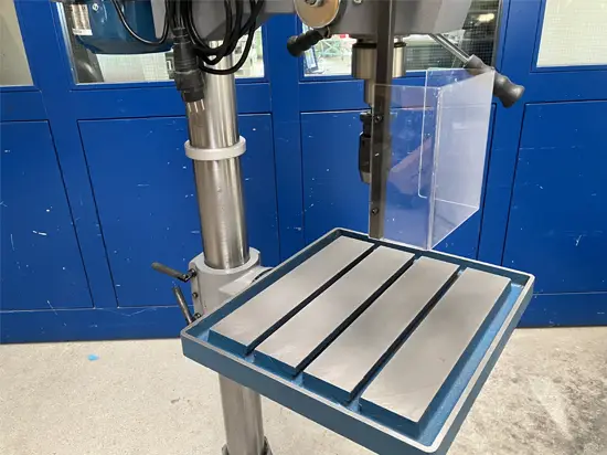 Bohrtisch mit Parallelnuten über Zahnstange verstellbar