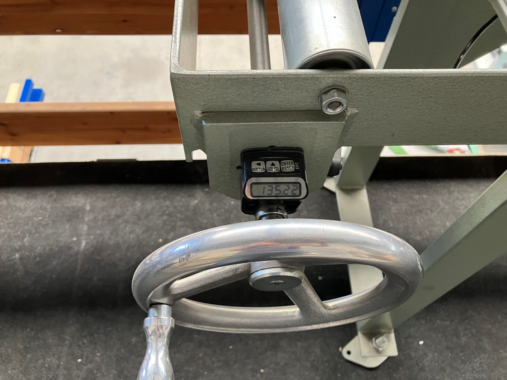 Zahnriemen. Eine LCD-Anzeige am Handrad erlaubt