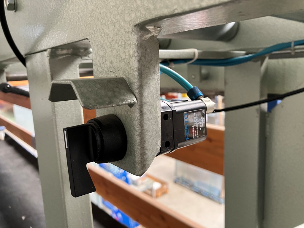 Der Anschlagschieber ist vom Arbeitsplatz über ein